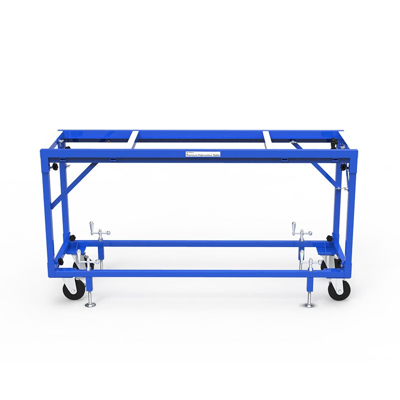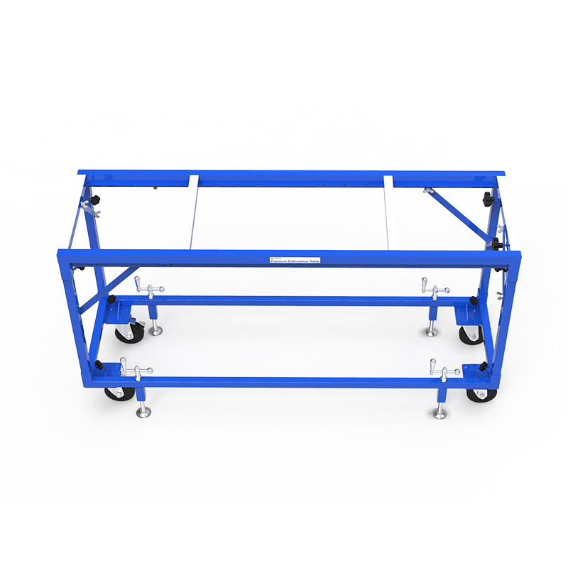 Versatile fabrication table with connecting screws allowing the unit to be jointed to other tables to create customized work configurations.
